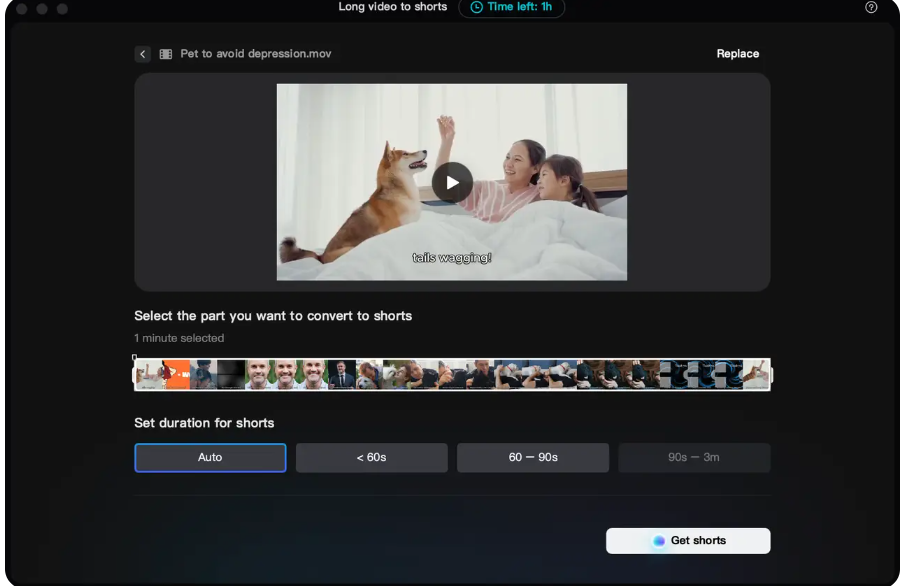 - Vídeo largo a partes cortas: Acortar vídeos largos para hacer vídeos de varias partes para contenido en redes