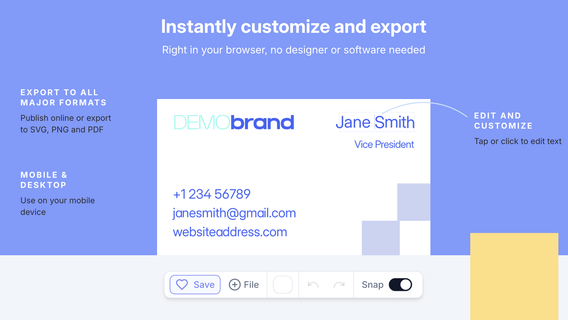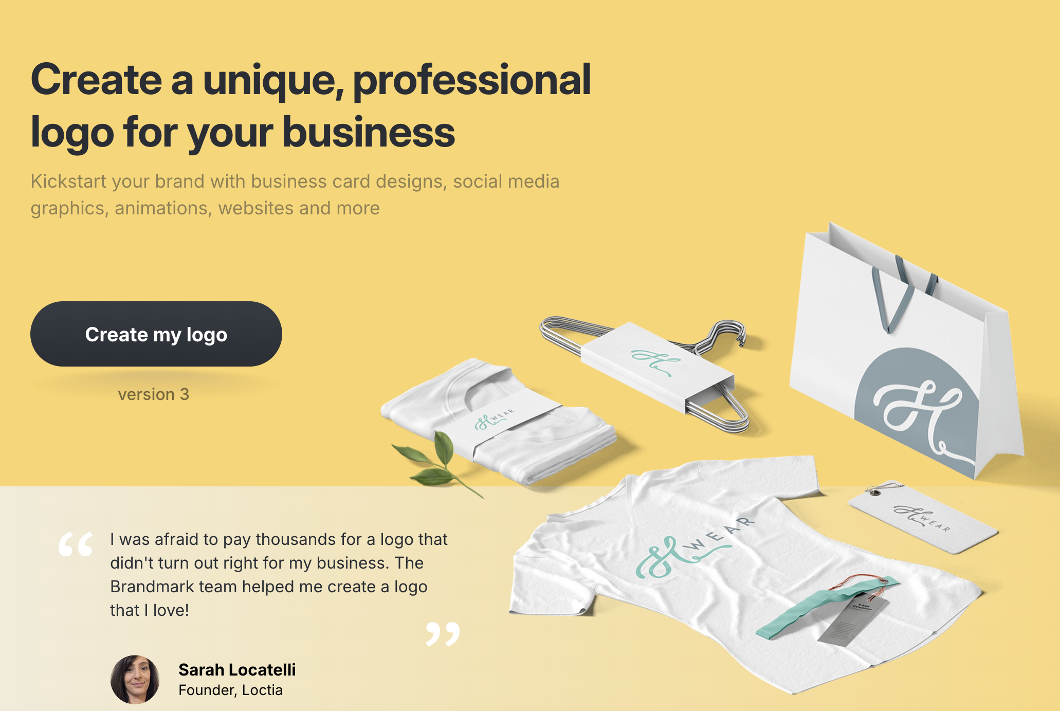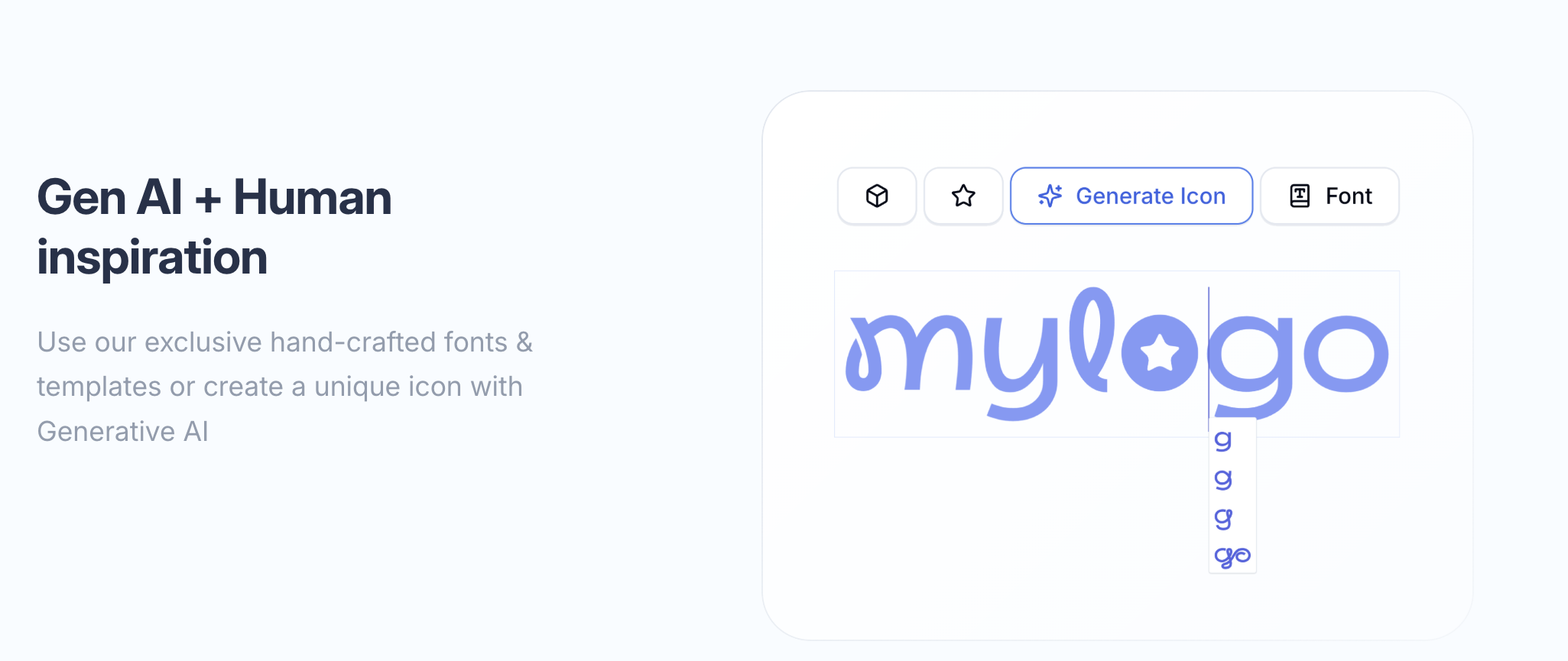 Generador de logos y kits de marca con IA que considera categoría de negocio, estilo emocional, paleta cromática; entrega logo + guías + mockups.