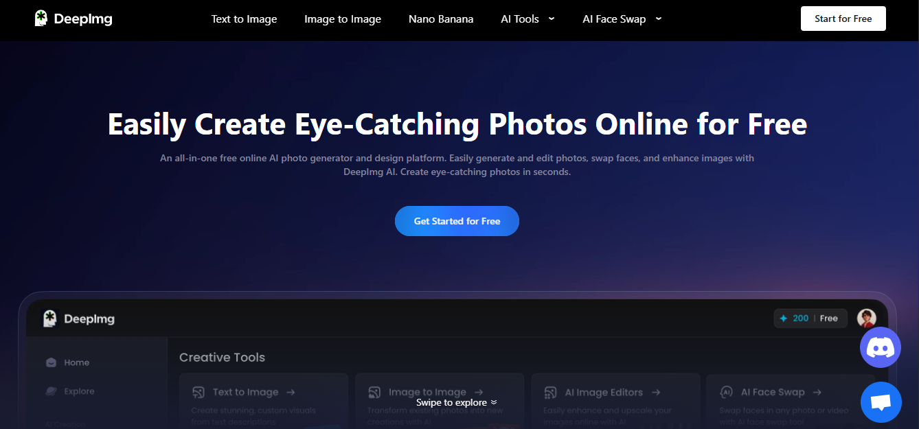 Es una plataforma que utiliza inteligencia artificial para generar y editar imágenes en línea. Permite tanto crear imágenes nuevas de diferentes estilos (realista, cómic, fantasía...) a partir de un texto o a partir de otras imágenes. También tiene otras herramientas, como editar fotos mediante funciones de fondo, retoque, intercambio de caras, etc. Es ideal para aficionados, diseñadores freelance o creadores de contenido para redes sociales.