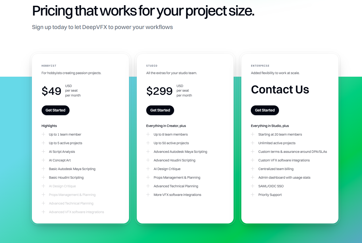 DeepVFX.ai es una plataforma de próxima generación impulsada por IA que revoluciona los flujos de trabajo de efectos visuales (VFX). Con una combinación de modelado de lenguaje (LLM) y automatización inteligente. DeepVFX.ai está diseñada tanto para estudios independientes como para grandes casas de VFX que buscan la automatización de tareas repetitivas en VFX: limpieza de imagen, tracking, integración de CGI,etc.