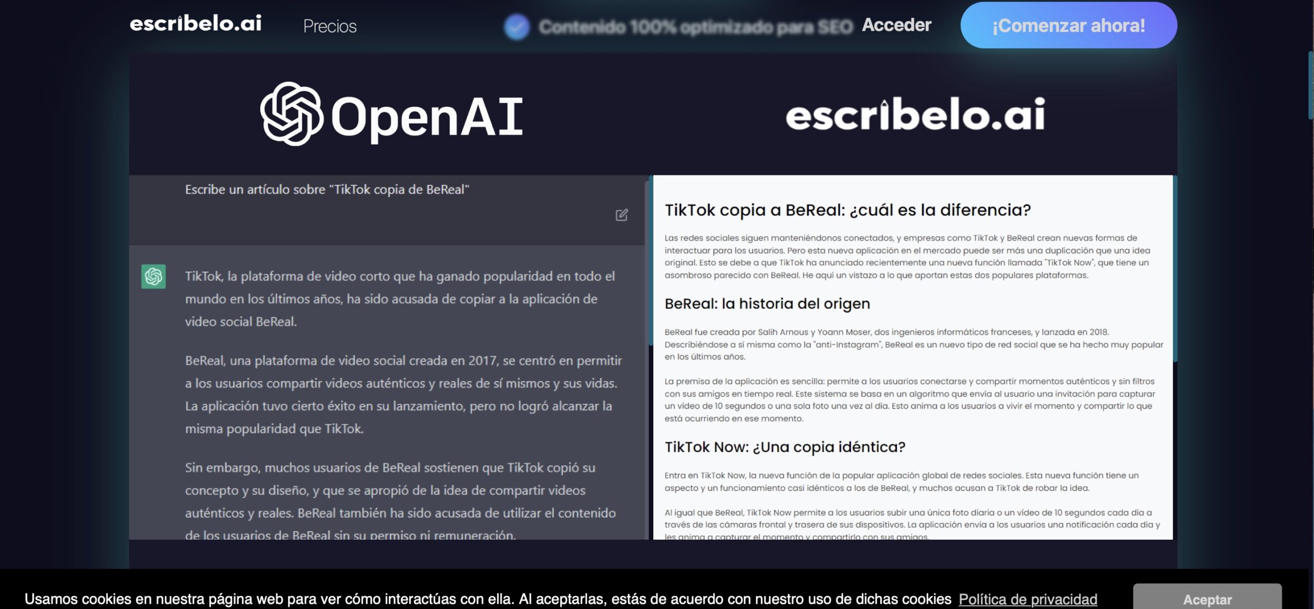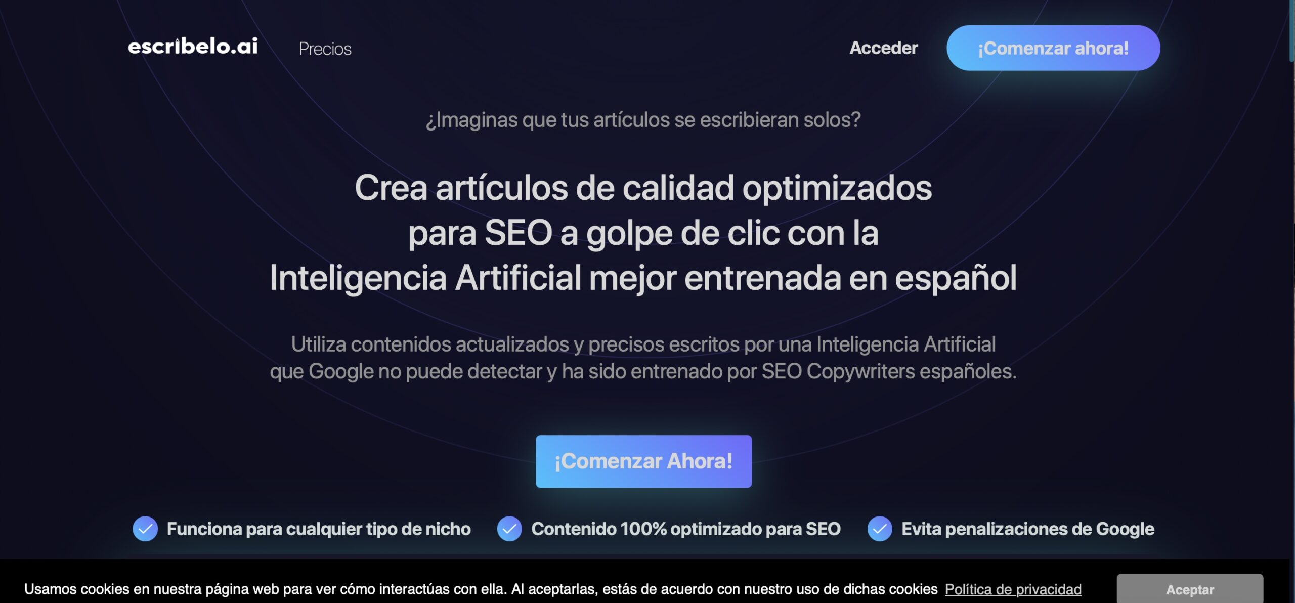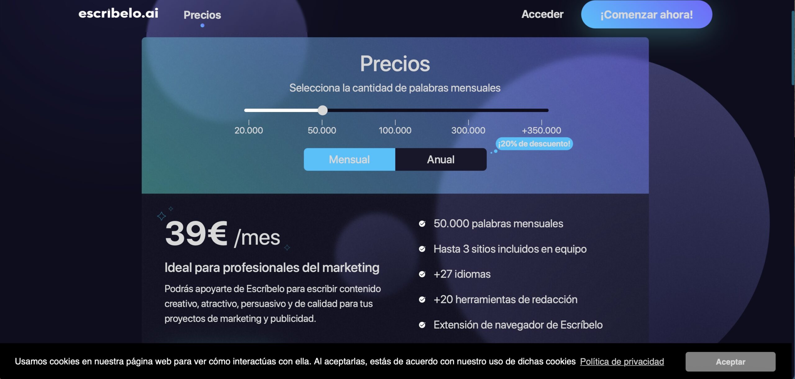Escribelo.ai es una plataforma de inteligencia artificial para generar textos optimizados para SEO. Permite escribir en hasta 29 idiomas, lo que facilita crear contenidos globales. Tiene una extensión para navegador para trabajar directamente en Google Docs, WordPress, Notion, etc. Además, ofrece un plugin para WordPress que automatiza la publicación de contenido.