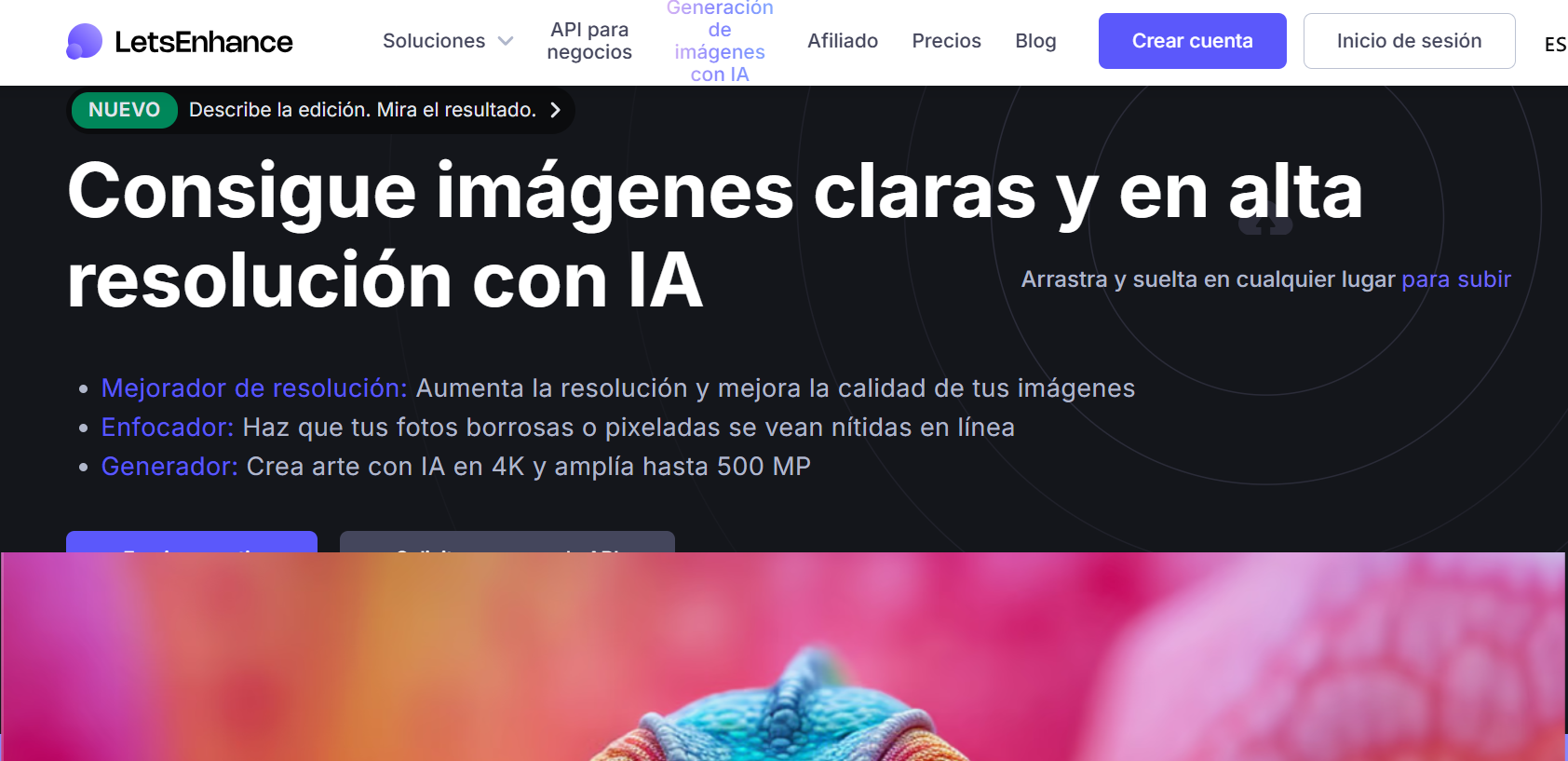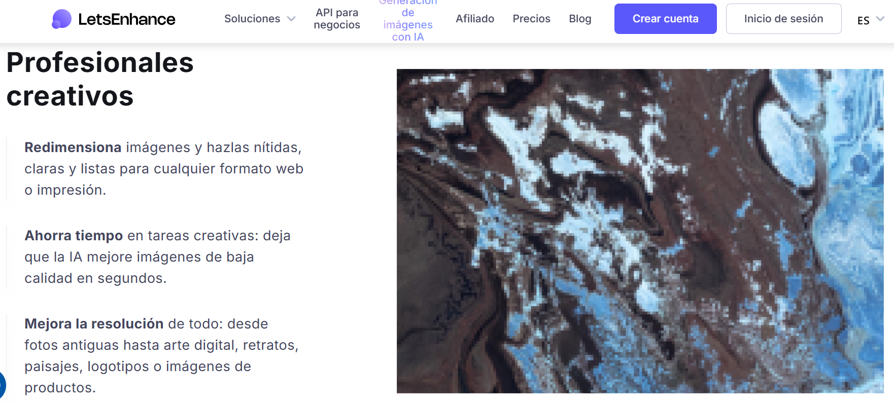 Se trata de una plataforma con funciones de inteligencia artificial capaces de mejorar la calidad de imágenes de baja resolución. Utiliza técnicas de superresolución para añadir detalles y aumentar las imágenes, resultando especialmente útil para renovar fotografías o diseños antiguos.