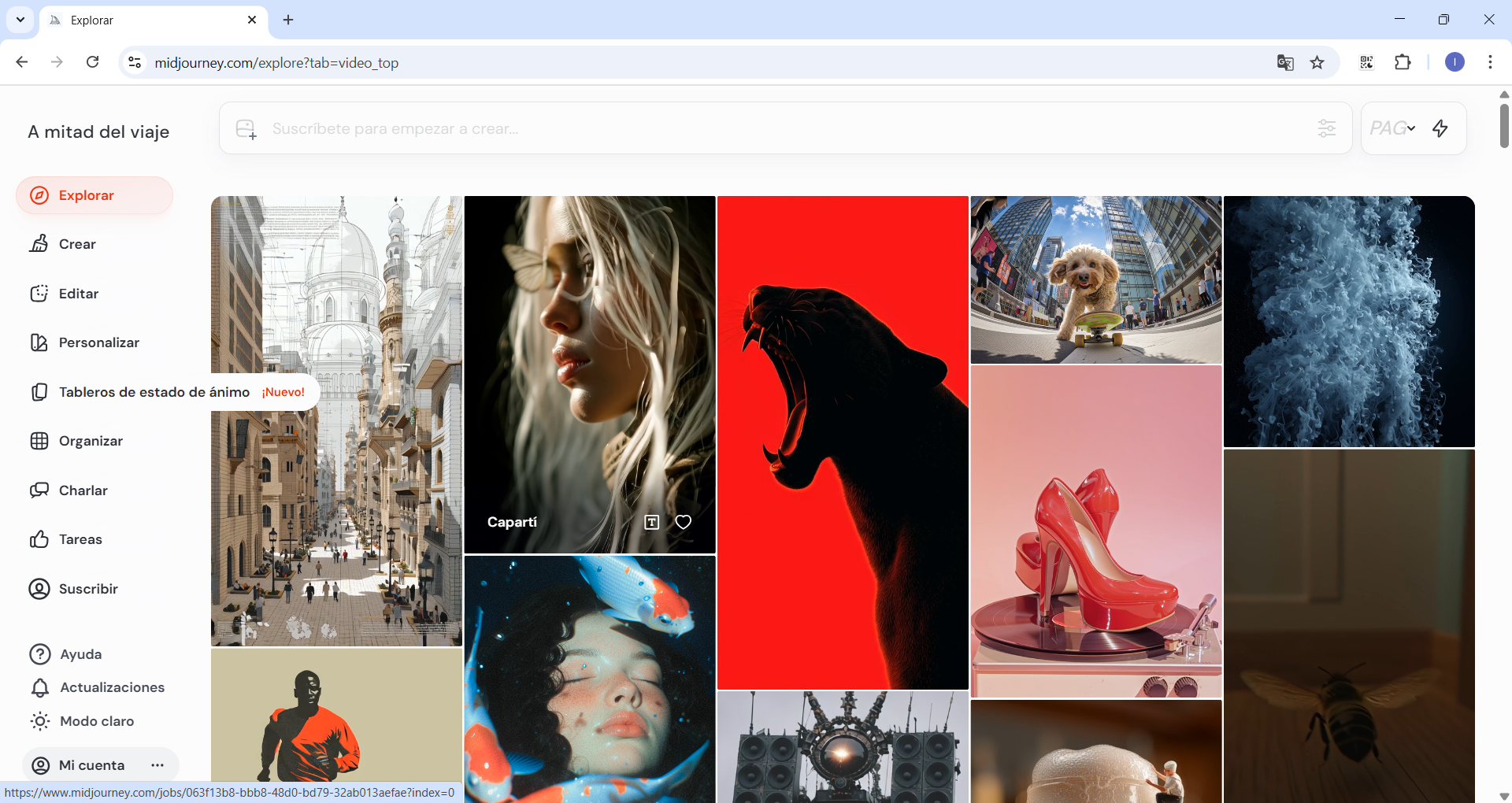 Midjourney es un servicio que crea imágenes a partir de descripciones textuales, lo que se conoce como texto a imagen.