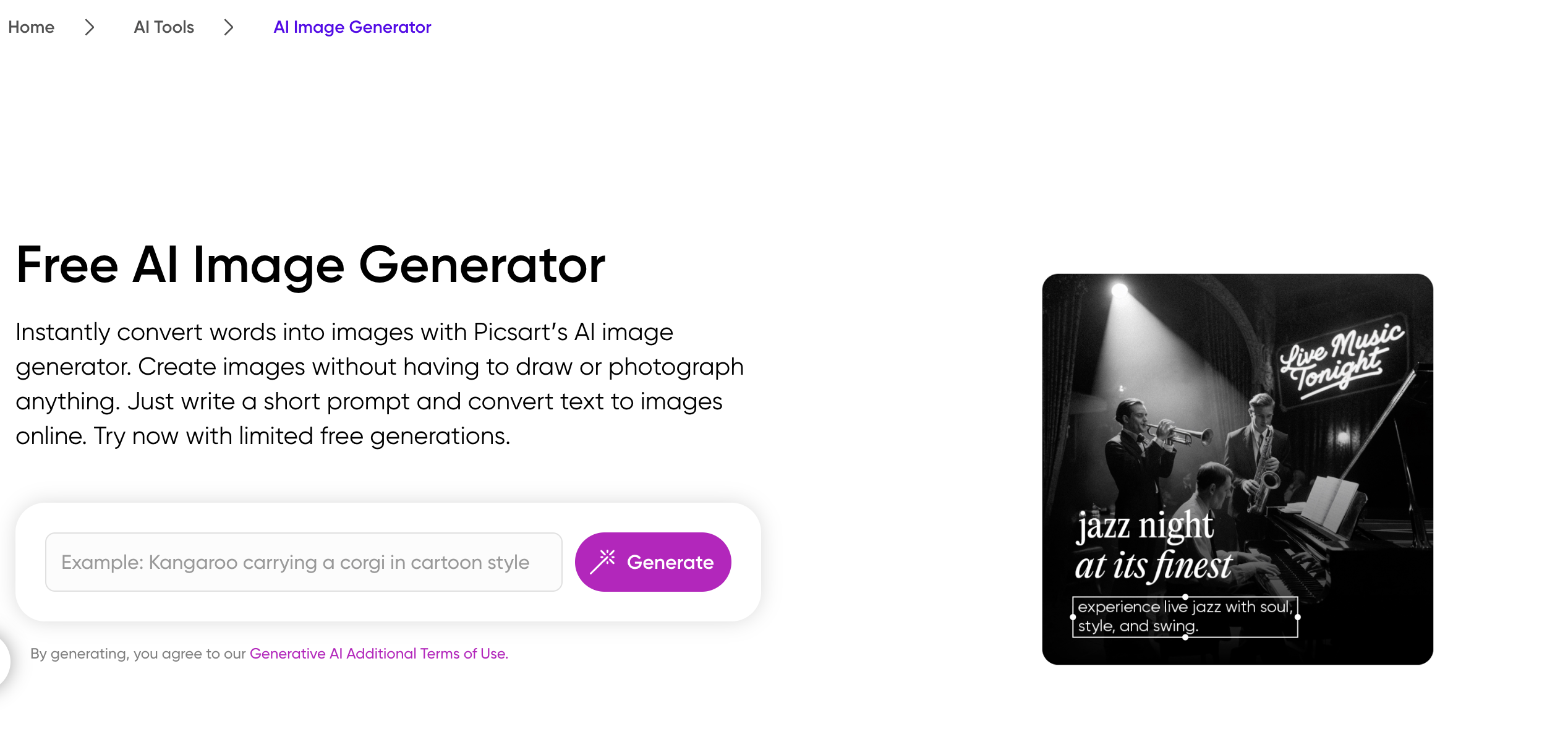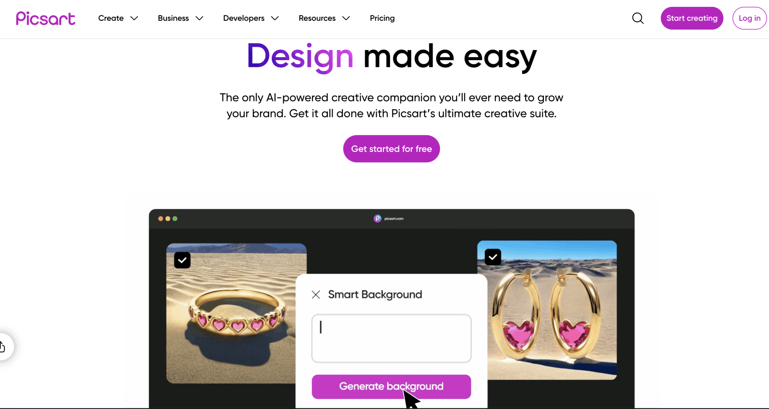 Picsart integra IA en su editor para eliminar fondos, generar imágenes y efectos automáticos, crear stickers y aplicar filtros inteligentes. También incluye un generador de arte desde texto y herramientas de edición rápida para redes sociales.