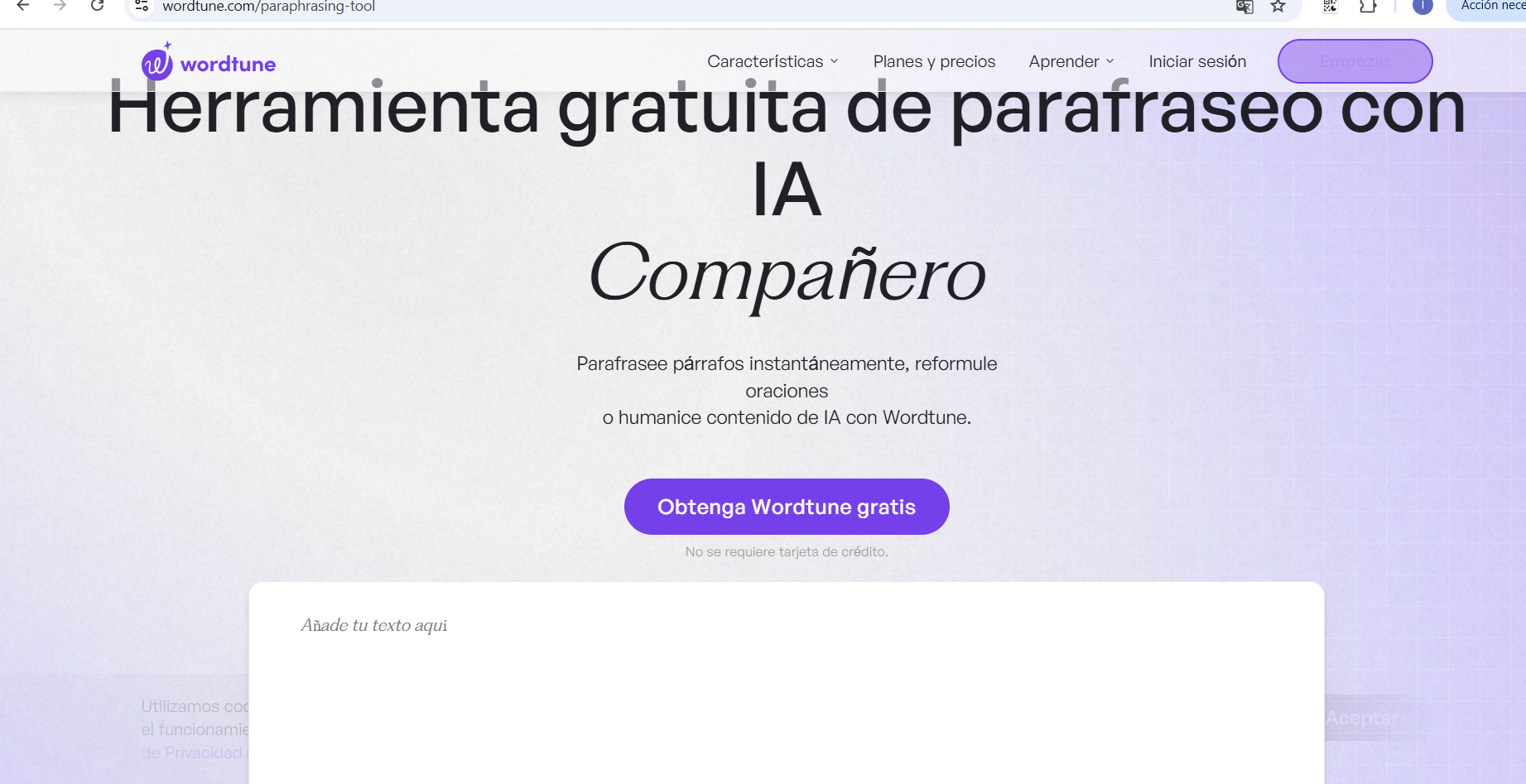 Worltune actúa como un asistente virtual y ofrece sugerencias para mejorar la claridad, concisión y eficacia general del texto. Tanto si está redactando un correo electrónico como un artículo o generando un post para las redes sociales wordtune agiliza el proceso de redacción y mejora la calidad del contenido.